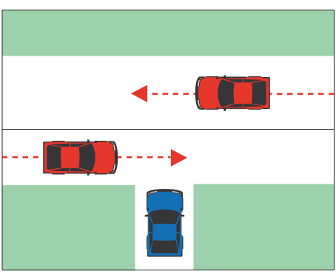 - Al girar a la izquierda, debes ceder el paso a todo el tráfico que viene en sentido contrario INCLUSO si fuiste el primero en entrar a la intersección.