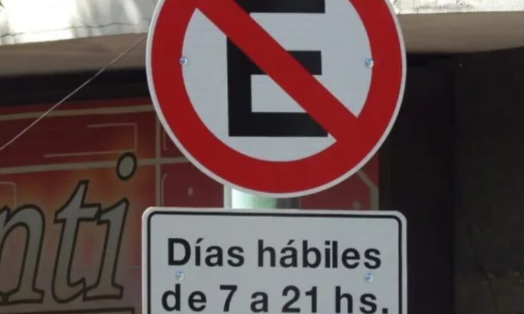 Señal “NO ESTACIONARSE” con flecha apuntando a la izquierda.
