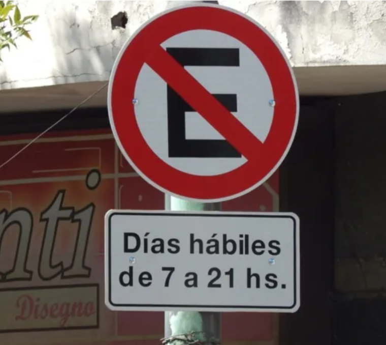 Señal “NO ESTACIONARSE” con flecha apuntando a la izquierda.